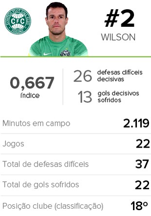 O goleiro do Coritiba começou a jogar pela equipe alviverde na décima rodada da Série A. Antes dele, o Coritiba tinha feito dez jogos e perdido sete... Com ele em campo, o Coxa jogou 22 para perder sete, vencer seis e empatar nove. Se a equipe está a um ponto de deixar a zona do rebaixamento para a Série B, Wilson tem uma participação considerável por manter as esperanças da equipe e da torcida alviverde. Ainda que tenha menos jogos do que o líder, se tivesse feito mais três defesas difíceis, um número possível para quem jogou 22 partidas, estaria na primeira colocação. Se uma grande equipe começa por um grande goleiro, o Coritiba está em boas mãos.