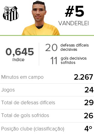 Vanderlei vestiu a camisa de titular do Santos por 24 vezes neste Brasileiro e sofreu 26 gols, quase um por jogo, mas apenas 11 deles foram decisivos, ou seja, foram marcados quando o Santos empatava ou vencia por um gol de diferença. Ainda que esteja agora no G-4 do Brasileirão, o Santos chegou a frequentar a zona de rebaixamento, e por um período pareceu focar mais na Copa do Brasil, da qual vai disputar as finais. Ainda assim, Vanderlei seria o primeiro colocado se tivesse feito mais cinco defesas difíceis decisivas. Como o Santos está na luta por uma vaga na Libertadores do ano que vem e só haverá uma rodada do Campeonato Brasileiro após a decisão da Copa do Brasil, o Santos deve jogar com empenho as últimas partidas do Brasileirão.