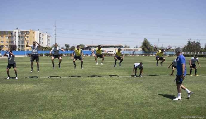 O elenco corintiano treinou nesta quinta-feira, em Santiago, antes de embarcar de volta para o Brasil. Na última quarta, a equipe venceu o Cobresal por 1 a 0, em El Salvador, cidade ao norte do Chile, na estreia da Taça Libertadores. A delegação viajou logo cedo de volta à capital chilena e, após o almoço, os jogadores trabalharam.