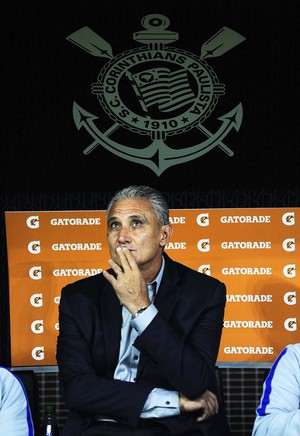 Tite durante a partida contra o Cerro Porteño, na Arena Corinthians (Foto: Marcos Ribolli)