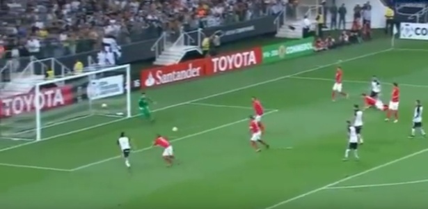 Jogada do primeiro gol tem início em triangulação pela direita...
