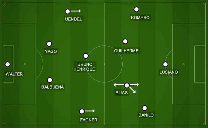 Para Fagner atacar com liberdade, Tite passou a segurar Uendel mais tempo na defesa. Assim, não permite que a equipe fique exposta a contra-ataques. Além disso, com mais jogadores no campo adversário, consegue aumentar a marcação na saída de bola.