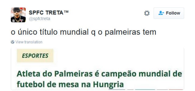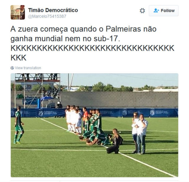 Assim que acabou a final do Mundial Sub-17, entre Palmeiras e Real Madrid, na tarde desta quarta-feira, os torcedores dos clubes rivais do Verdão foram às redes sociais para brincar com a derrota do time alviverde.