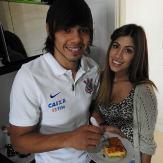 Ángel Romero, do Corinthians, com sua noiva, Gabriela Miskirich (Foto: Marcelo Braga)