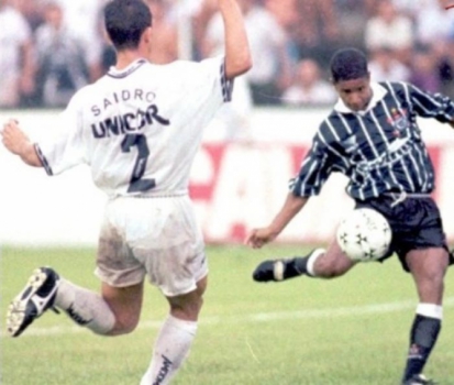 No dia 11/02/1996, Marcelinho Carioca fez um gol de placa pelo Corinthians no empate por 2 a 2 com o Santos (Foto: Reprodução)