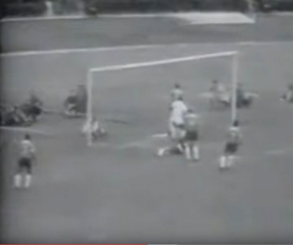 No dia 11/04/1957, o Santos venceu o Corinthians por 5 a 3 e Pelé marcou o primeiro de seus 50 gols sobre o rival (Foto: Reprodução)