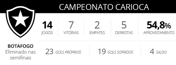 Com jogos decisivos desde o início do ano pela Pré-Libertadores e um elenco na conta do chá, o Botafogo não conseguiu se dedicar como gostaria ao Campeonato Carioca. Fora das semifinais da Taça Guanabara, chegou até a final da Taça Rio e garantiu uma vaga nas semifinais do estadual. No entanto, acabou superado pelo Flamengo, que terminou como campeão.
