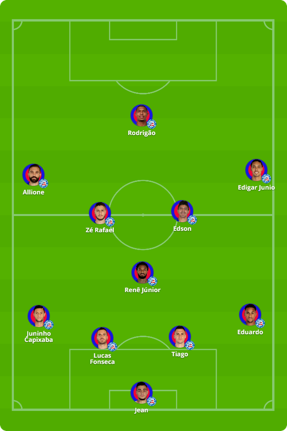 O treinador do Bahia tem uma ausência importante para o jogo desta noite. Por motivos contratuais, Mendoza não poderá enfrentar o Corinthians. Por outro lado, Allione, Thiago Martins, Matheus Sales, Edson e Tiago, que não atuaram na última rodada, voltam a ficar à disposição do treinador. O Tricolor deve ir a campo com: Jean; Eduardo, Tiago, Lucas Fonseca, Juninho Capixaba; Renê Junior; Edson, Zé Rafael, Allione e Edigar Junio; Rodrigão.