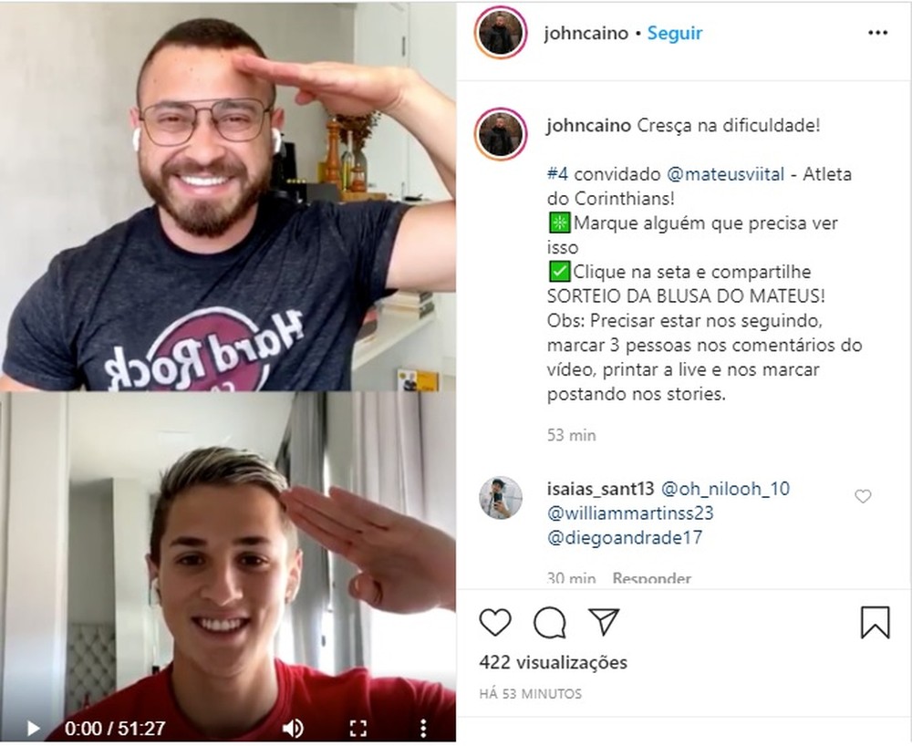 Através de uma live no Instagram, na manhã deste domingo (05), o meia do Timão Mateus Vital relembrou momentos difíceis em sua vida, como a morte da mãe quando tinha apenas nove anos, e revelou que cogitou repensar a carreira em 2018, em seu início no clube.