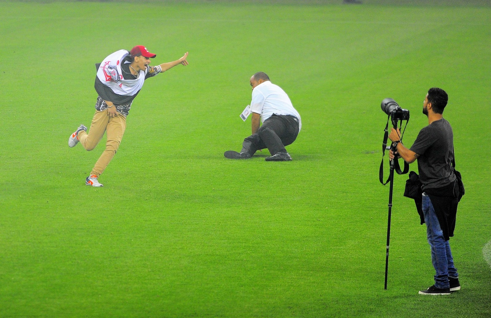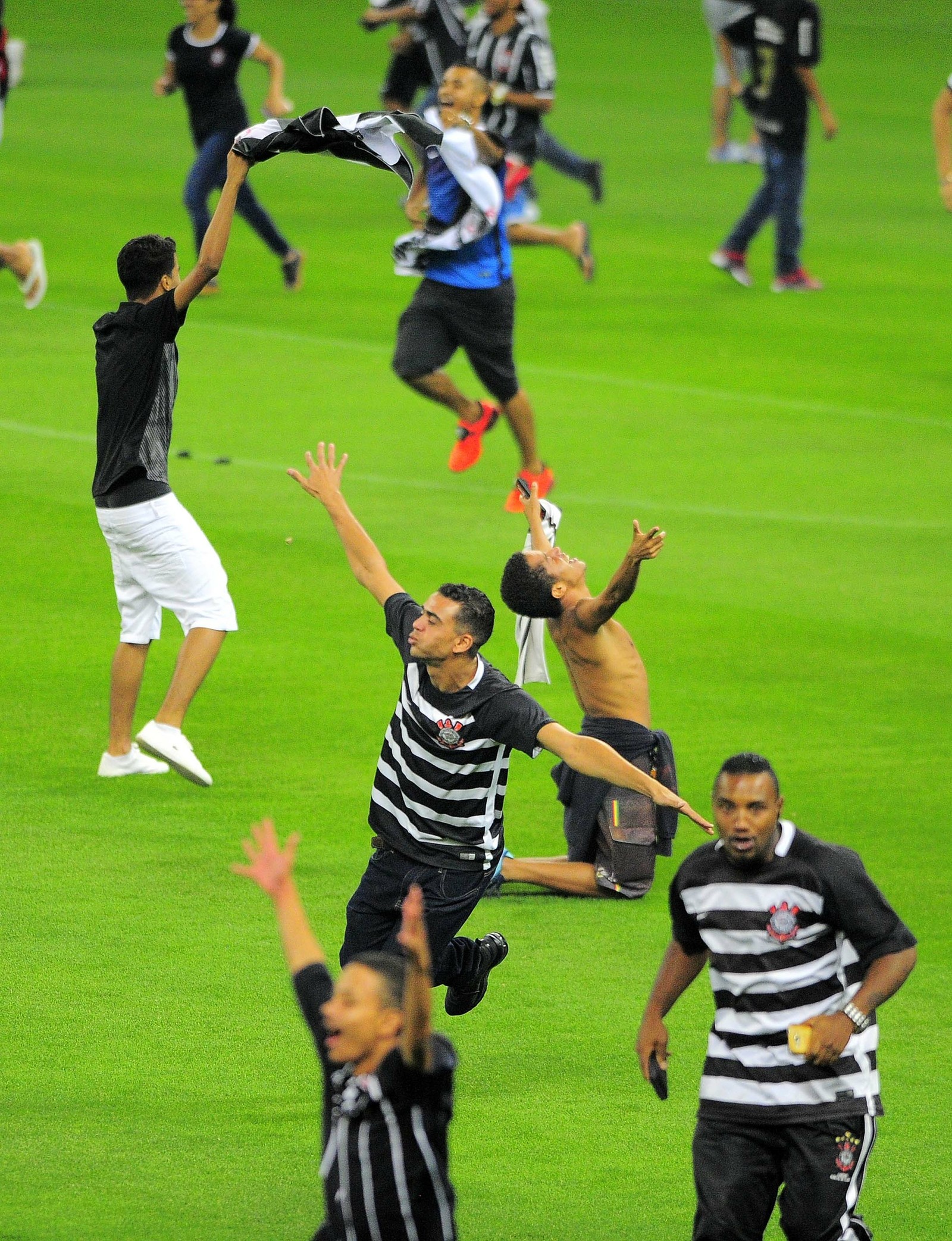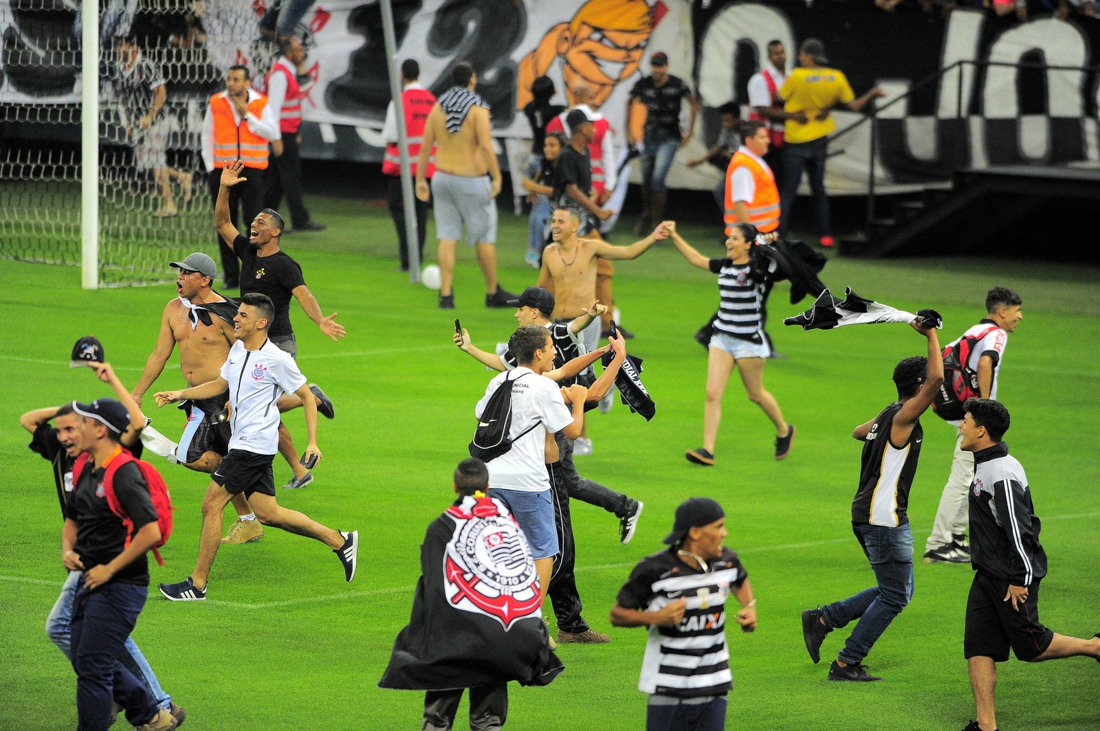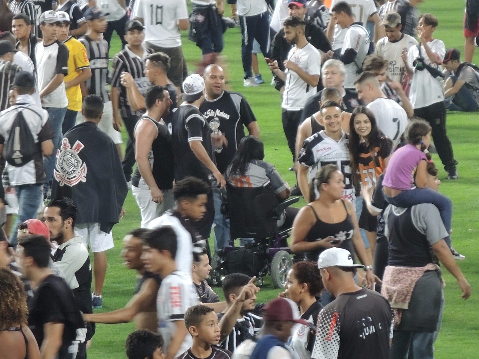 Irritado, o presidente Andrés Sanchez dispensou o auxílio da PM para fazer a segurança do evento, e por isso, foi possível acender sinalizadores nas arquibancadas. Depois de cantarem e incentivarem o Timão por mais de uma hora e meia, centenas de torcedores invadiram o gramado ao final da atividade.