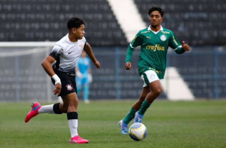 Foto: Rodrigo Gazzanel / Agência Corinthians - Legenda: Palmeiras e Corinthians duelam pelas quartas do Brasileirão Sub-17 / Jogada10 Palmeiras e Corinthians se enfrentam nesta terça-feira (24), às 15h (de Brasília), pelo confronto de volta das quartas de final do Campeonato Brasileiro Sub-17. Na partida de ida, as equipes empataram por 2 a 2, no Parque São Jorge. Os gols das Crias do Terrão foram de Gui Negão e Kauã Henrique, enquanto Erick Belé e Juan Gabriel marcaram para o Verdão.