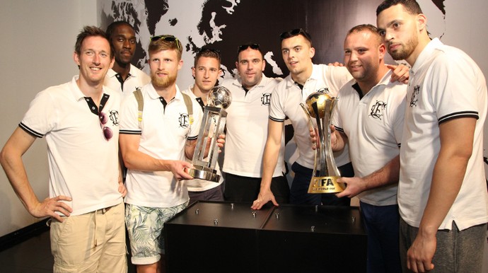 Jogadores do Corinthian-Casuals em visita ao Parque São Jorge nesta semana (Foto: divulgação / Corinthians)