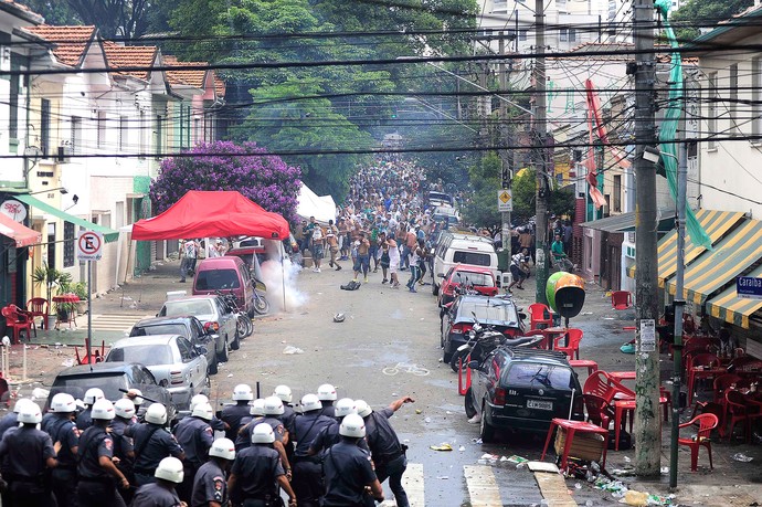 No domingo, houve confronto entre a PM e palmeirenses ao redor do estádio (Foto: Marcos Ribolli)