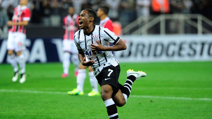 Elias corre para comemorar o primeiro gol do Corinthians sobre o São Paulo