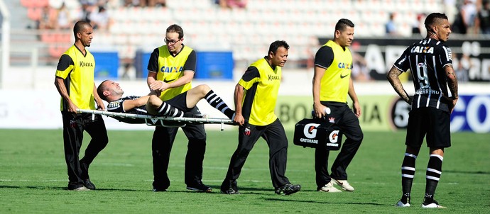 Bruno Henrique deixa o campo na maca depois de sofrer luxação no cotovelo esquerdo