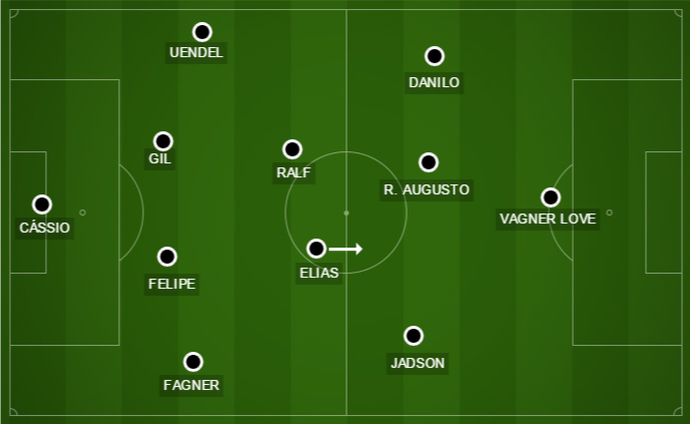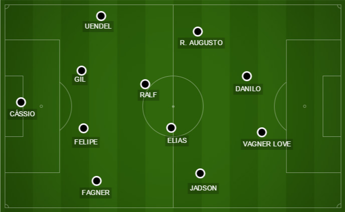 A alternativa do técnico é alterar a formação para o 4-4-2 tradicional. Assim, Vagner Love ganha força. O “Artilheiro do Amor” não está pronto fisicamente, mas ficaria com a vaga de Emerson para atuar ao lado de Danilo.