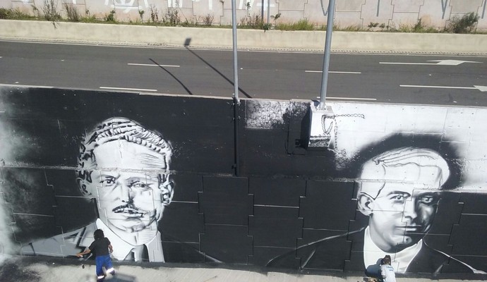 Rostos dos fundadores do Corinthians foram pintados no muro de entrada