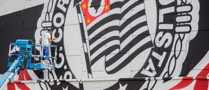 O trabalho está em um grande muro que fica ao lado do estacionamento do setor. Além da evolução do distintivo do Corinthians, há lembranças de momentos marcantes do clube.