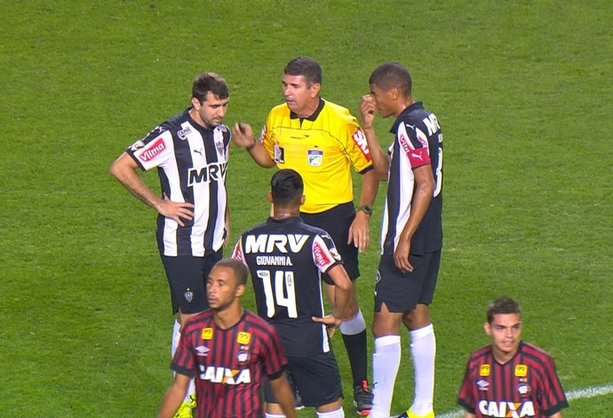 Lucas Pratto e Leonardo Silva questionam o árbitro Marcelo de Lima Henrique