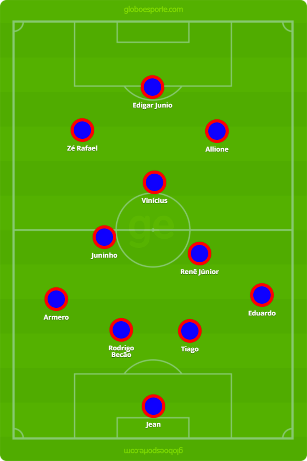 Para a partida desta quinta, o técnico Jorginho não vai contar com o volante Edson, que sofreu uma entorse no joelho e deve ser substituído por Juninho. Outra vaga do meio, no entanto, está indefinida. Apesar de estar recuperado de lesão, o meia Régis depende de avaliação física para ser confirmado no 11 inicial.