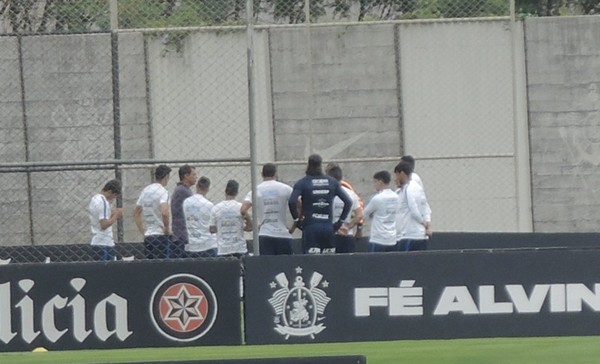 sob garoa, Carille reuniu a equipe titular antes da atividade e teve uma breve conversa com o grupo. Enquanto isso, os reservas trabalharam em outro campo.