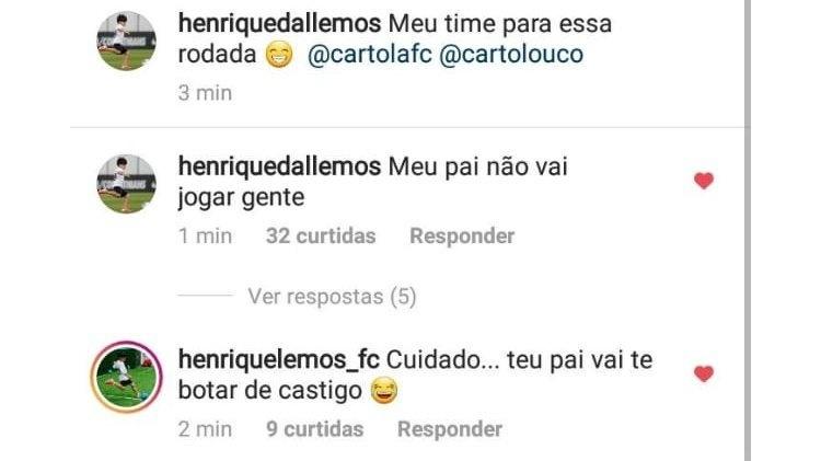 O lateral-direito Fagner será poupado pelo Corinthians na partida de amanhã, contra o Fortaleza, às 19h, pela 12ª rodada do Campeonato Brasileiro. Pelo menos foi isso que seu filho Henrique, de nove anos, revelou a seus mais de 130 mil seguidores no Instagram. O garoto mostrou em uma postagem o time que escalaria no fantasy game Cartola FC, que não contava com o pai. Questionado por seguidores, respondeu: "Meu pai não vai jogar, gente". Mais tarde, em outra resposta, falou o motivo: "Poupado".