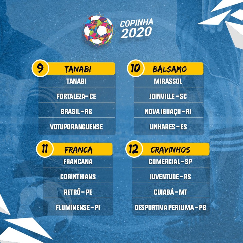 Atual campeão, o São Paulo defenderá o título em São Bernardo do Campo, contra EC São Bernardo, Operário-PR e Palmeira-RN. Vice em 2019, o Vasco está no Grupo 19, ao lado de Itapirense, Carajás-PA e Jacuipense-BA, na sede de Itapira. O Corinthians, maior campeão, foi para o Grupo 11, em Franca, ao lado de Francana, Retrô-PE e Fluminense-PI. Veja o grupo do alvinegro: