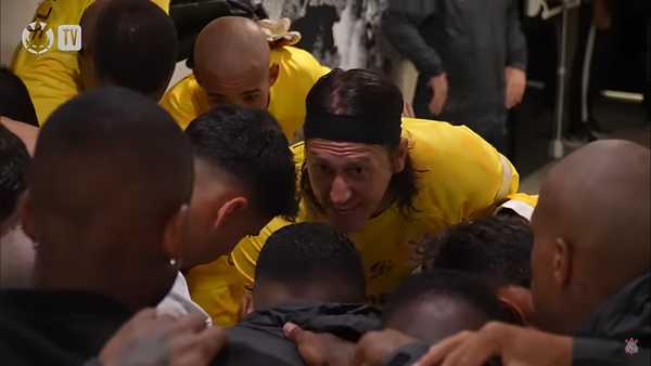 A fala consta de vídeo de bastidores divulgado pelo Corinthians . O material ainda apresenta parte dos discursos do técnico Mano Menezes antes e depois da partida.