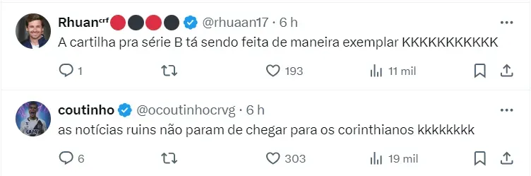 Momento conturbado no Timão. O Corinthians vem de três jogos sem vencer, sendo duas derrotas consecutivas no Campeonato Brasileiro, o que colocou a equipe na zona de rebaixamento da competição. O que mais agrava a situação é que a equipe está abaixo na tabela de times com menos jogos.