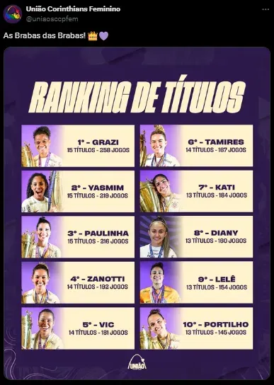Hegemonia das Brabas Se o time masculino segue dando dor de cabeça ao torcedor por conta dos resultados em campo e as polêmicas extracampo, o Corinthians Feminino quer manter a sua hegemonia. Equipe teve mudanças entre jogadoras e na comissão técnica. Divulgação/Staff Images/CBF. A equipe alvinegra segue na liderança do Brasileirão Feminino e continua 100% invicto nesta temporada. Ao todo, são 18 jogos já disputados, com 16 vitórias e dois empates. A temporada de 2024 até causou uma certa preocupação por conta das mudanças. Porém, o Corinthians vem mostrando a sua força e é, inclusive, o único classificado às quartas do Brasileirão Feminino. As mudanças para a temporada No início deste ano, o Corinthians teve algumas baixas. A mais impactante foi na casamata. Histórico na equipe, o treinador Arthur Elias deixou o clube e fechou com a Seleção Brasileira, que disputará as Olimpíadas. Diretora de futebol, Cris Gambaré também deixou o Corinthians depois de seis longas temporadas. Hoje, ela é a coordenadora técnica de seleções femininas da CBF. Grandes nomes também deixaram o time. Grazi se aposentou, assim como Tainá, Andressinha, Diany, Giovanna Campiolo, Katiuscia e Luana Bertolucci deixaram o time. Tarciane foi vendida ao longo da temporada. As chegadas no Timão No lugar de Arthur Elias, a direção acertou com Lucas Piccinato, que estava no Internacional e conquistou a taça inédita da Ladies Cup. Na direção do futebol, o Corinthians fechou com Iris Sesso. Para o elenco, algumas atletas chegaram, como Gi Fernandes, Daniela Arias, Eudimilla, Yaya, Nicole e Letícia Santos. Mais jogadoras seguem sendo sondadas pelo clube. Hoje, as Brabas são líderes do Brasileirão Feminino. Ao todo, são 34 pontos, nove a mais que a Ferroviária, segunda colocada na tabela de classificação. Até agora, somam apenas um empate. O que diz a web