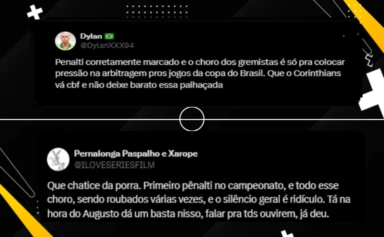 Jogo polêmico Na última quinta-feira (25), o Corinthians perdeu a oportunidade de conseguir uma importante vitória. Em um confronto direto com o Grêmio, contra a zona de rebaixamento, o jogo terminou empatado em 2 a 2. © Ettore Chiereguini Kannemann e Romero disputando lance em partida entre Corinthians e Grêmio, na Neo Química Arena, pelo Campeonato Brasileiro, no dia 25/07/2024. Os gols do Alvinegro Paulista foram anotados por Yuri Alberto e Rodrigo Garro, em um golaço no fim da partida. Acontece que o tento anotado pelo camisa 9 aconteceu em um pênalti que gerou muita controvérsia. Muitos gremistas reclamaram demais da marcação que surgiu em um suposto puxão de Kannemann em Romero após levantamento na área, no primeiro tempo. Após muita polêmica, a CBF acabou divulgando o áudio do VAR. Árbitro vê puxão “todo o tempo” Na conversa com o árbitro Alex Gomes Stefano, membros da cabine do VAR levantaram o possível penal: “ O Kannemann puxa o braço do jogador atacante enquanto a bola ainda foi lançada ”, disse. Depois de ver o lance, Stefano deixou clara sua visão: “ Ele puxa. Está a todo momento segurando. Ele puxou a todo momento. Puxou acintosamente ” disse ele se referindo ao zagueiro gremista no lance sobre o camisa 11 corinthiano. A polêmica está preocupando o Corinthians para os confrontos na Copa do Brasil. Isso fez, inclusive, o Clube ir até a CBF para evitar uma “arbitragem mal intencionada” após o ocorrido pelo Brasileirão Série A. E o mercado? Enquanto isso, o mercado da bola segue repercutindo. Surgiu a informação de que Wesley vai receber uma proposta de uma equipe da Inglaterra e o presidente Augusto Melo já foi avisado. Além disso , Ramón Díaz quer Cuellar para reforçar o elenco do Time do Povo para a sequência da competição nacional. Dessa forma, o argentino teria cobrado a diretoria para fechar a contratação. Reações da Fiel sobre o lance