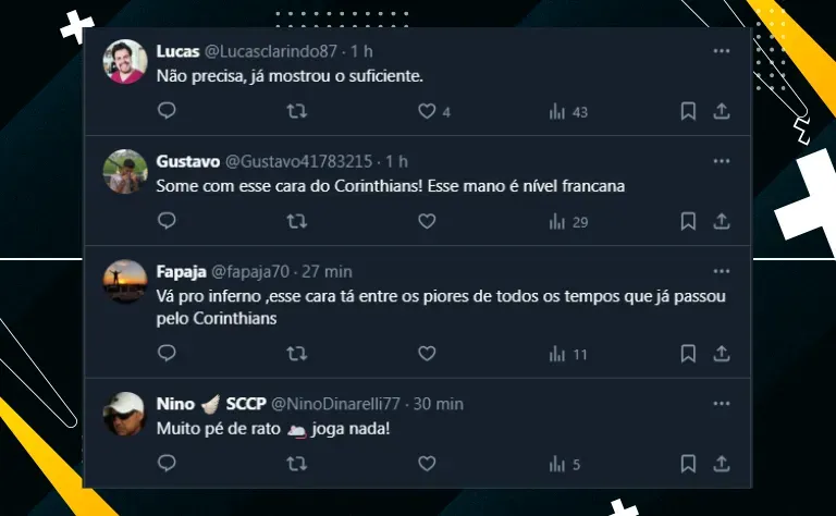 Alvinegros criticam o atacante
