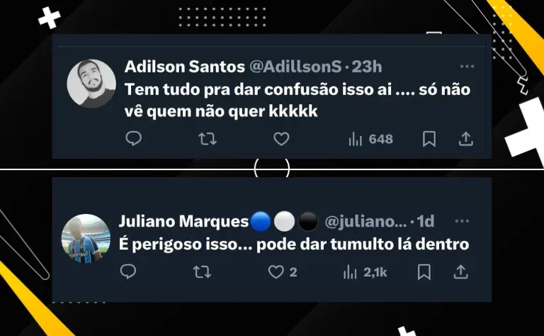 Grêmio x Corinthians O Grêmio e o Corinthians se enfrentam nesta quarta-feira (07), às 21h30, em busca de uma vaga nas quartas de finais da Copa do Brasil. A partida vai acontecer no Estádio Couto Pereira, em Curitiba. © Fernando Moreno/AGIF Augusto de Melo, presidente do Corinthians, que enfrenta o Grêmio pela CDB. Foto: Fernando Moreno/AGIF Foram disponibilizados cerca de 2 mil ingressos para a torcida visitante, que foi esgotado já na segunda-feira. A polícia da cidade cogita aumentar o setor para a torcida do Corinthians , mas ainda não há nada oficializado. A decisão da polícia e da diretoria dos dois clubes se dá depois que vários torcedores da equipe paulista começaram a comprar ingressos do mandante, ou seja, bilhetes disponibilizados para a torcida do Grêmio. Torcida visitante O Grêmio colocou carga de 34 mil entradas para a partida contra o Corinthians . Na última atualização do Tricolor, cerca de 29 mil ingressos já tinham sido vendidos. Porém, os ingressos que estão sendo disponibilizados para o Grêmio, estão sendo comprados pela torcida do Corinthians . Um vídeo do portal do Meu Timão mostra a fila de torcedores do time paulista tentando comprar ingressos para assistir ao jogo no setor da torcida do Tricolor gaúcho. A torcida do Imortal não gostou nada do que a torcida corintiana está fazendo e muitos ficaram preocupados na web com medo de confusão. "Tragédia Anunciada. E caso se confirme, o Grêmio no final vai ser punido", escreveu um torcedor nas redes sociais. Empate no primeiro jogo O primeiro duelo das oitavas de finais da Copa do Brasil, entre Grêmio e Corinthians, foi na Neo Química Arena e terminou empatado em 2 a 2. Yuri Alberto e Garro marcaram os gols do time paulista. Já Rodrygo Ely e Villasanti foram os autores dos tentos tricolores. Para esse jogo, Renato Gaúcho tem desfalques importantes , com Rafael Cabral e mais quatro jogadores fora. Revolta do torcedor do Grêmio na web