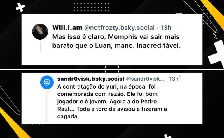 O ‘projeto’ do Corinthians em Memphis Depay ficará mais barato do que os investimentos em Yuri Alberto e Pedro Raul, segundo dados da Itatiaia. Em cinco anos de contrato, Yuri dará um gasto de R$ 110,5 milhões. Já Pedro Raul dará R$ 73 milhões em cinco anos. Memphis Depay tem passagens por Barcelona, PSV, Manchester United, Lyon e Atlético de Madrid. O jogador estava no clube de Madrid até o final de junho, quando seu contrato terminou. Na seleção holandesa, ele é o segundo maior artilheiro da história, com 46 gols em 98 jogos. Além disso, ele já marcou um gol na Neo Química Arena jogando pelo seu país.