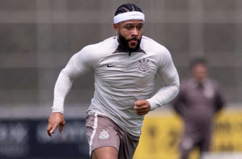 Foto: Rodrigo Coca/Agência Corinthians - Legenda: Memphis Depay em treino neste sábado, no CT Joaquim Grava / Jogada10