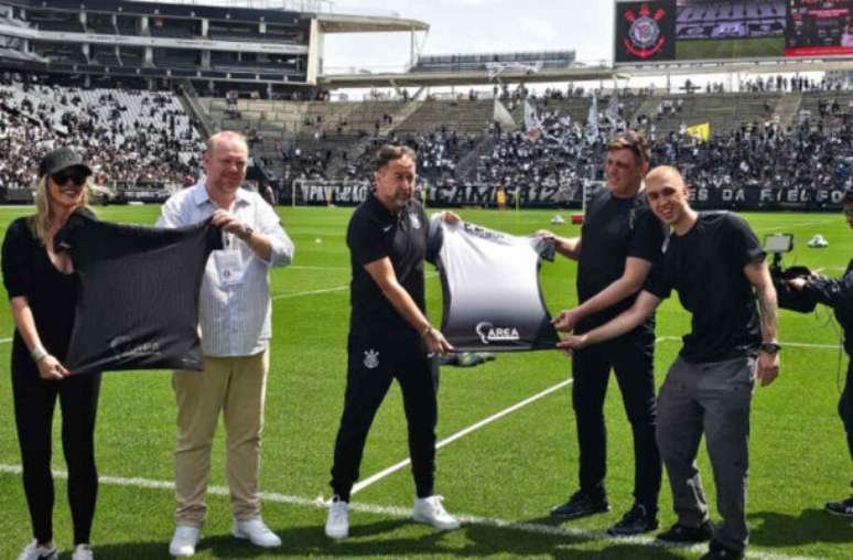 O presidente Augusto Melo divulgou a parceria em treino aberto antes da viagem do time para Brasília, onde vai enfrentar o São Paulo pelo Campeonato Brasileiro. Ele expressou sua satisfação com a negociação e destacou a importância do Corinthians no mercado. Além do presidente, estavam presentes no gramado o superintendente de marketing Vinicius Manfredi, o superintendente comercial Sandor Romanelli e representantes da Elétrica Area.