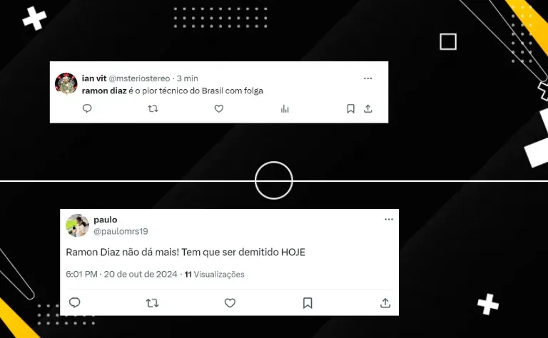 Timão está fora da Copa do Brasil e torcida critica o treinador Neste domingo (20), na Neo Química Arena, Corinthians x Flamengo se enfrentam pelo segundo jogo da semifinal da Copa Betano do Brasil e o jogo terminou 0 a 0. O Rubro-Negro venceu por 1 a 0 na ida e está na decisão do torneio. Ramón Díaz durante jogo contra o Flamengo na Neo Química Arena. Yuri Alberto é criticado pela torcida do Corinthians após eliminação RMP ignora o Flamengo e define Corinthians como favorito Com o desfalque de Memphis Depay, o treinador Ramón Díaz escalou o Timão com três atacantes – Yuri Alberto, Romero e Talles Magno. Mas o Alvinegro pouco assustou a meta do goleiro Rossi e foi eliminado. Bruno Henrique, do Flamengo, foi expulso no primeiro tempo após atingir a cabeça de Matheuzinho. Porém, o Alvinegro não tirou proveito da vantagem numérica e a torcida culpa o treinador pela eliminação de hoje. Ramón Díaz merece ser demitido após o jogo de hoje? “Ramon Diaz não dá mais! Tem que ser demitido HOJE”, disse um torcedor na web após o empate por 0 a 0. “Parece que é o Corinthians que tem um jogador a menos. Quanta desorganização”, apontou outro corinthiano na rede social do X. Na opinião da Fiel Torcida , a presidente Augusto Melo precisa demitir o treinador argentino de forma imediata e não pode continuar com o profissional para o restante da temporada. Muitos consideram que ele é o pior técnico do futebol brasileiro (veja os tweets ao fim da matéria).