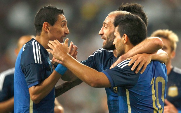 Di Maria, Zabaleta e Aguero comemoram o primeiro da Argentina contra a Alemanha
