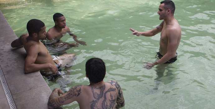 Malcom, Fagner, Felipe e Romero relaxam em atividade na piscina