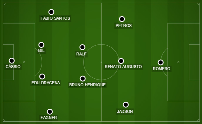 Neste sábado, Tite faz o último treino para confirmar a equipe que joga o Dérbi. O Timão deve entrar em campo com Cássio, Fagner, Edu Dracena, Gil e Fábio Santos; Ralf e Bruno Henrique; Jadson, Renato Augusto e Petros; Romero.